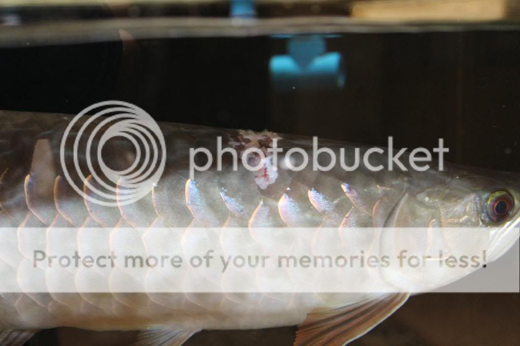 tks noelfishland. good idea to remove the flagtail to be sure. did a water change and put salt in the tank today. however i noticed that some red are showing up from the bottom of the scales. Anyway, still relieved that its probably not bacterial or fungal infection and hope the water change fixes the problem. The flagtail could be the culprit. In case my RTG survives, can I still put the flagtail back later in the tank ? I see in the net that a lot of people has a flagtail swimming with their aros without any problems.