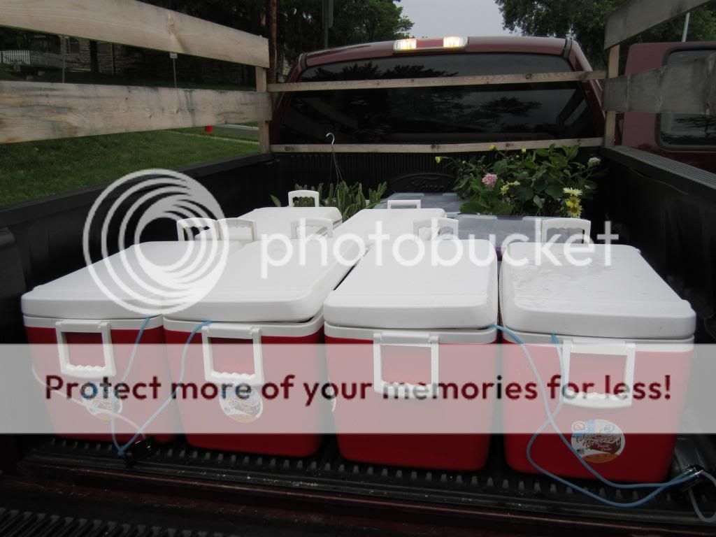 So, jump ahead to last summer... time to move across half the country over two days, with fish, setup a fish room on the second day of the move, and just hope there's an electrical outlet to plug in to. Fish and house-plants in the back of the truck, tanks in a u-haul towed by the truck, dogs in the front with me.... off we go to meet up with Bichir-Girl in NJ! Lost power on the battery operated pumps overnight in a torrential downpour woke up on the start of the second day with a bunch of dead/hypoxic fish. Overall, lost about 1/3 of what we tried to transport