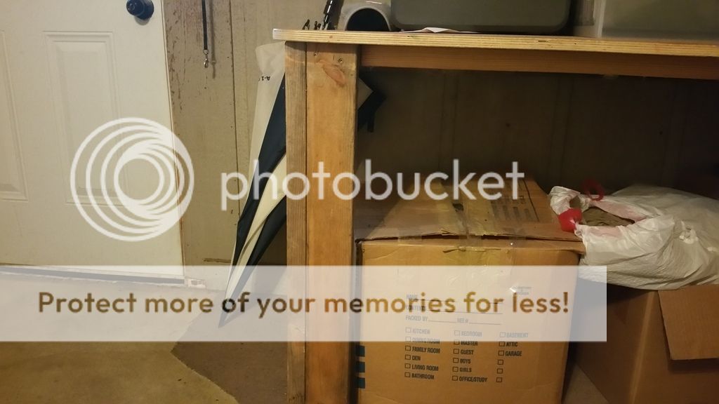 Shop table my father in law installed when they had this house. We're possibly gonna try to install a 125g on it, but I'm not sure it'll hold. It's very sturdy, just not sure about 125g filled sturdy. Here's the photos I got.