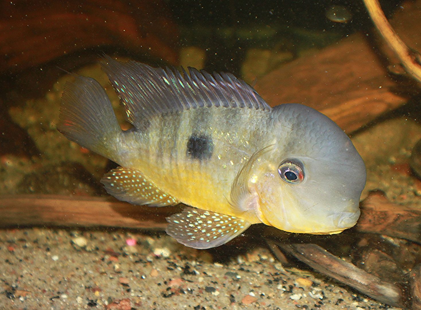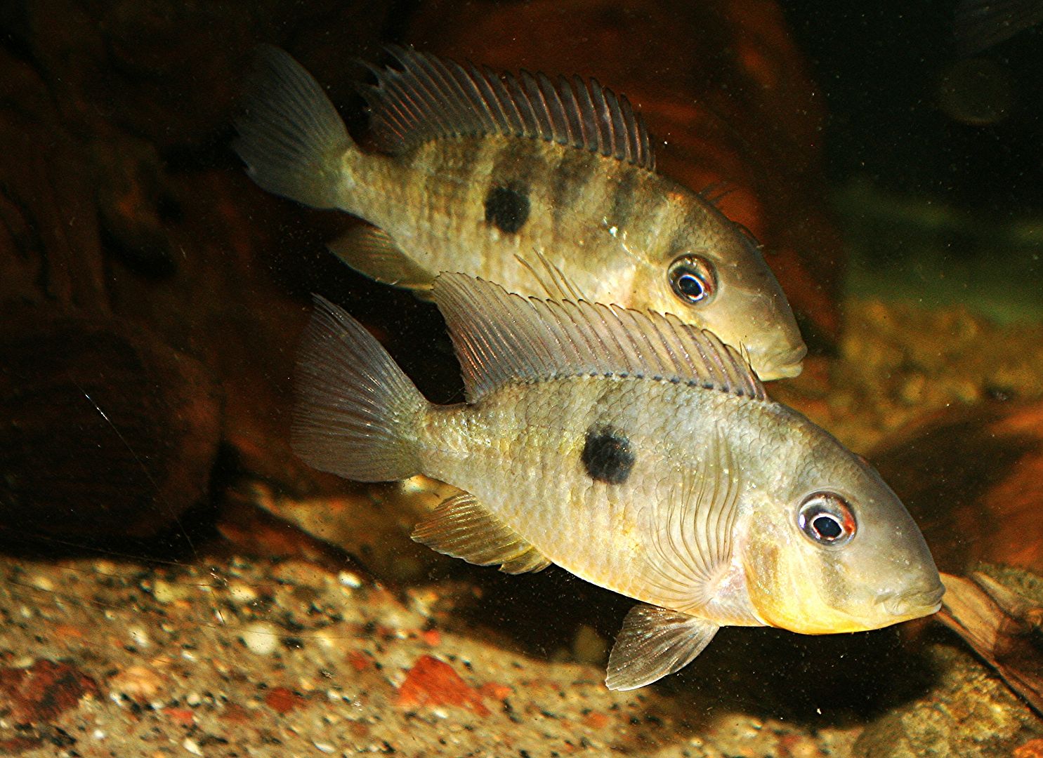 So we got one yesterday for our Bichir tank and they've been doing good together so far. But the Geo will not stop (not attacking) but gently biting its reflection in the tank. Is there anything I can do? So far I only have the geo and two large bichirs. Is it lonely? And also is it a male or female? I'm thinking female.