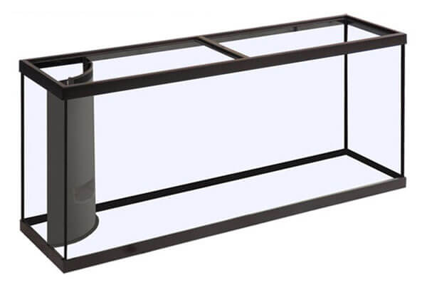 The glass is raised and does not touch the stand and the tank sits on the plastic trim.