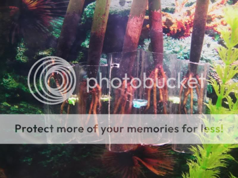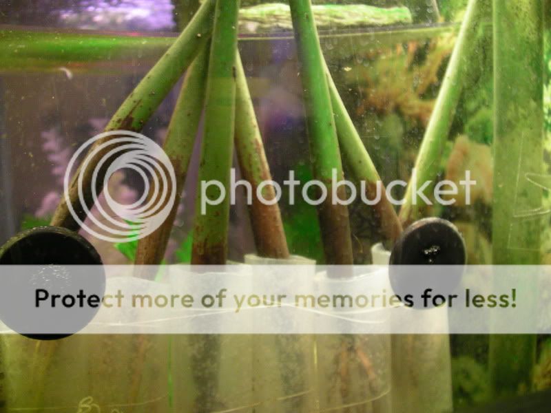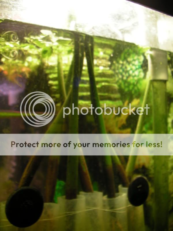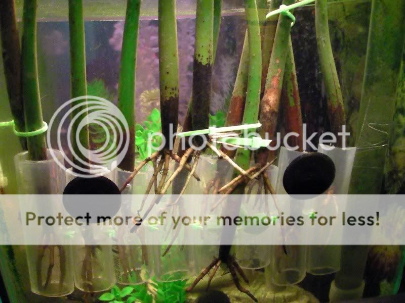 the old setup had the roots bunched up in 1.5 inch vinyl tube sections to force the roots to grow downward. these tubes were connected together buy a bunch of rubber bands. The idea was to allow water movement through the roots, and protect the roots from the pacus.