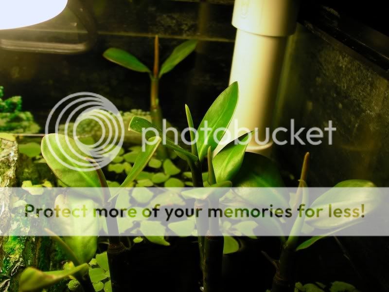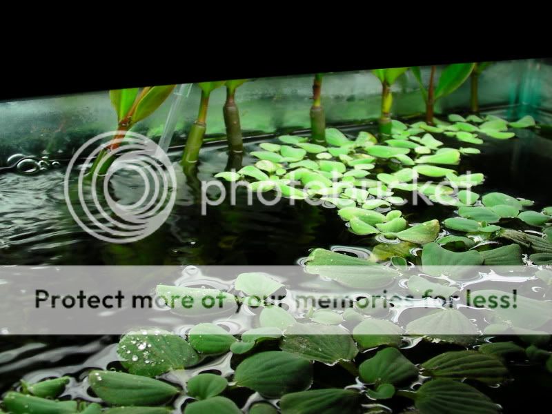more floating plants, installed in the tank to be a mangrove tank. This tank has a repti-glo series 5 26watt compact fluorescent that also functions as a basking lamp for the turtle. the spectrum of this bulb is ideal for plant growth as well. the plants are approx 4-5" away from the bulb... for now.