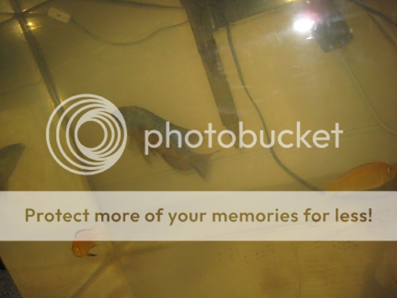 So 1 hour later. And a very nice free fish. (He is likely almost 10 inches.) I have him in the smaller tank for the next week or two till I move him to the main tank.... And the tank is due for its water change tomorrow so well not the best photos. (The previous owner had him in a 30 gallon... Oh and we had fun confusing a parking lot monitor when we said were exchanging fish and would be leaving shortly... while he pulled out the giant bag with the fish.)