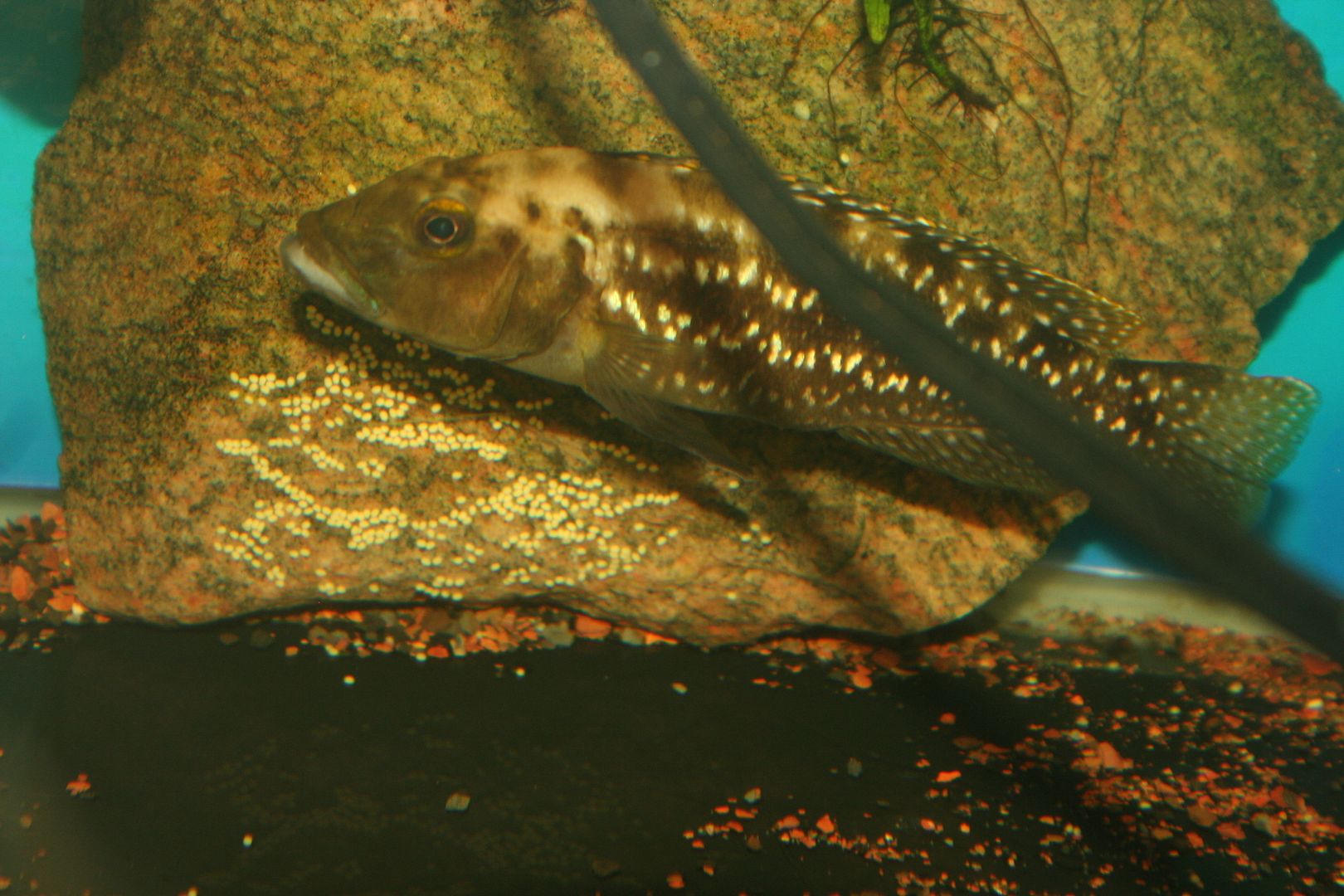 What this is in my tank... I have been trying to figure out if I missed the egg laying process for my jack dempseys and still am left with no answers.. But there is is this almost gel looking stuff in areas of my tank especially in there nest they dug, which they did yesterday and I monitored it throughout the day from when they dug it til now.. It had nothing in it. Now there's gel like substance in there and also all along side of there flower pot. I did a 25% water change today and I didn't want to disturb too much but I tried to vacuum up some off to the sides and it would fall back out like it was heavy. I stopped vacuuming. Any thoughts?