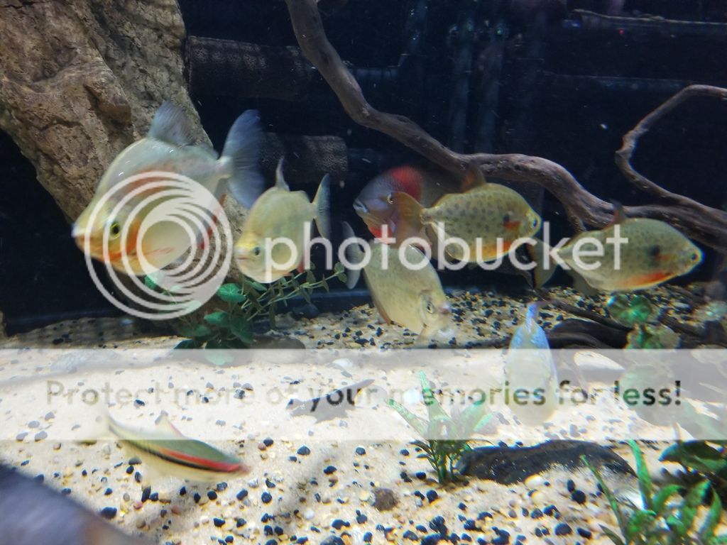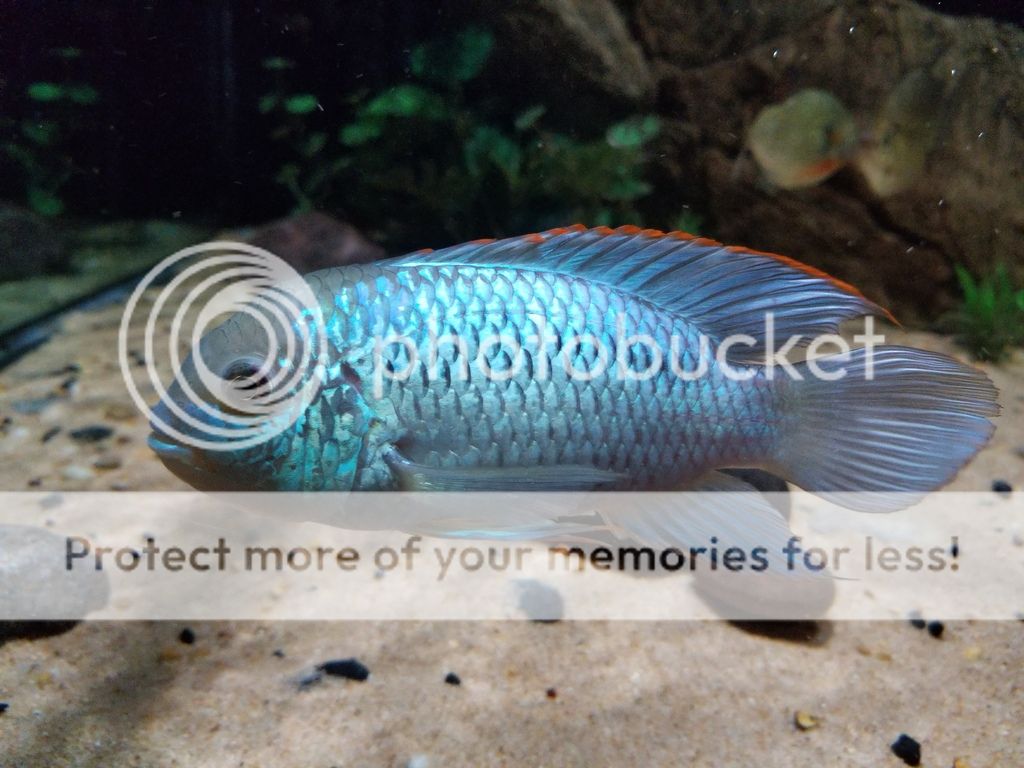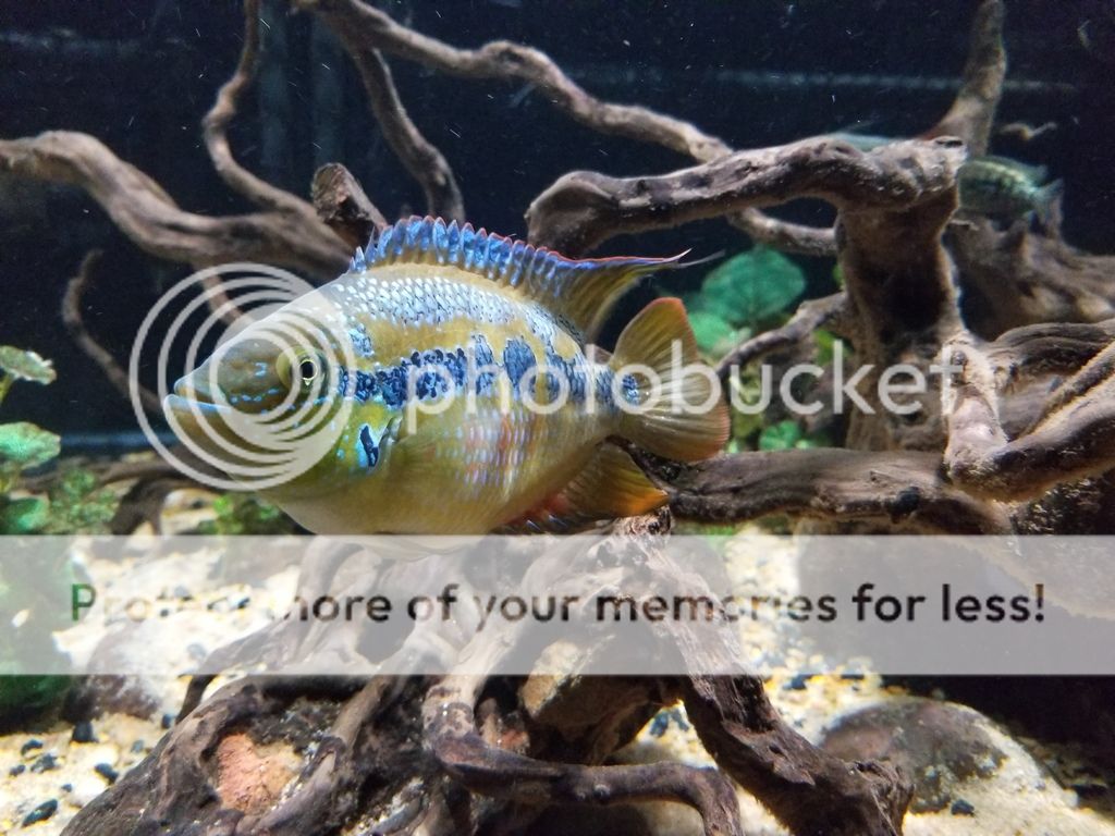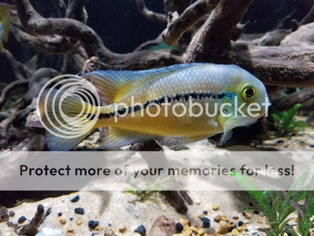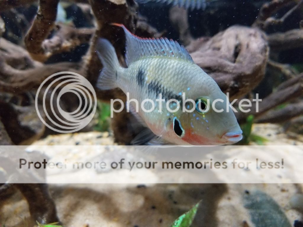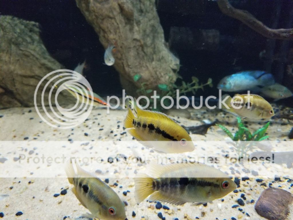 Yet another cichlid that I have always wanted to add to my tank. It took forever to find a group of them around here, now all of a sudden the supply is abundant. They are still young but are starting to show color. - Bonus, you can see the two Buenos Aires Tetra "Thing 1 & Thing 2" in this pic. These guys are awesome, if I were to add more dithers, it would probably be more of this Tetra.