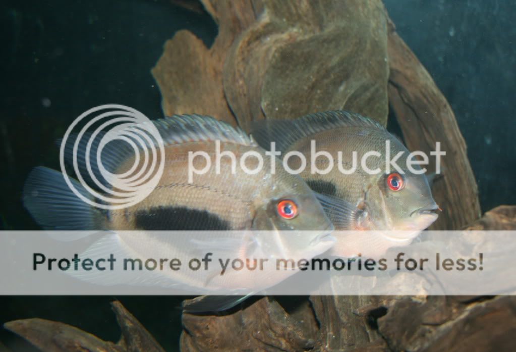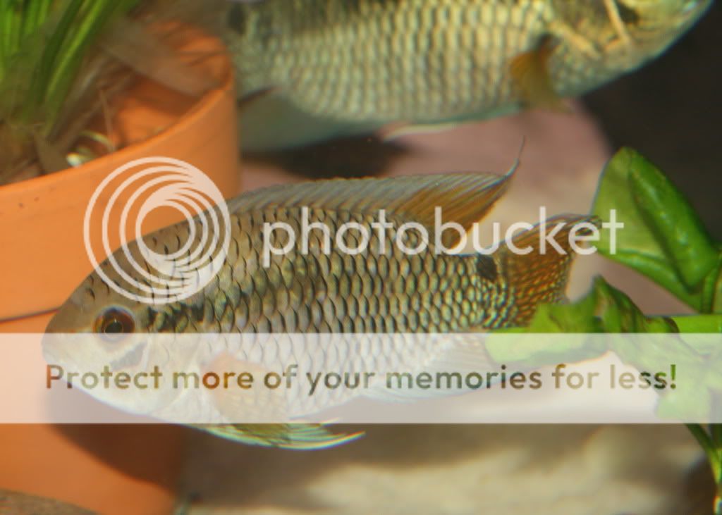 Cichlasoma dimerus wild pair spawned three times in a month and about to do it again soon. Male is just blue but the female is actually quite colorful.