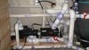 Here are some photos of the final plumbing setup. The sponge filter is now in place, overflows from the 600G acrylic to the pond have been completed, and I have suspended the pump that feeds the 600G a few inches above our main filter intakes.