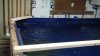 Here are some photos of the pond filled with water and partially operational. We have the pumps for the bead filter and for the 600G tank running. Currently waiting on silicone to dry on the sponge filter. The filter while very effective at mechanical filtration could use better seals, had a few leaks on it, decided to take it apart and silicone it to death.
