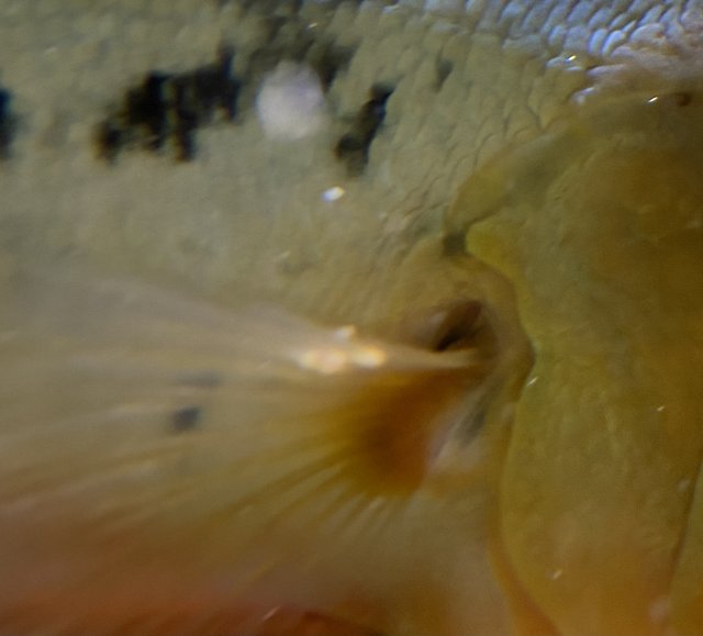 the male mono has something attached to his fin -