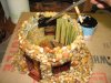 Ok, this is "The Rock House". I started this sometime after I finished the tank. It's one of the first decorations I started building for this tank. It was inspired by some of the old rock homes that still exist in the foothills here in So.Cal. There was no real planning on this, I just stole an empty round container from my wife's side of our bathroom and started sticking river pebbles on it. (You can see the remnants of the container in the first pic). One thing led to another and I ended up with what you see. It is by no means finished - there's a few more things that I'm planning on doing but you get the idea.