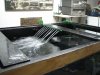 In this set you can see both bay drawers open. Figuring out how to build those was by no means easy. Second pic is the tank on the stand. The outside of the tank hasnt been finished yet. Third pic is the tank filled with the filter running. The spraybar is temp. fixed to the crossbrace. I wanted to see how I could set up currents in the tank. Fourth shot is the filter on the outside. It will eventually go into the rt. bay drawer.