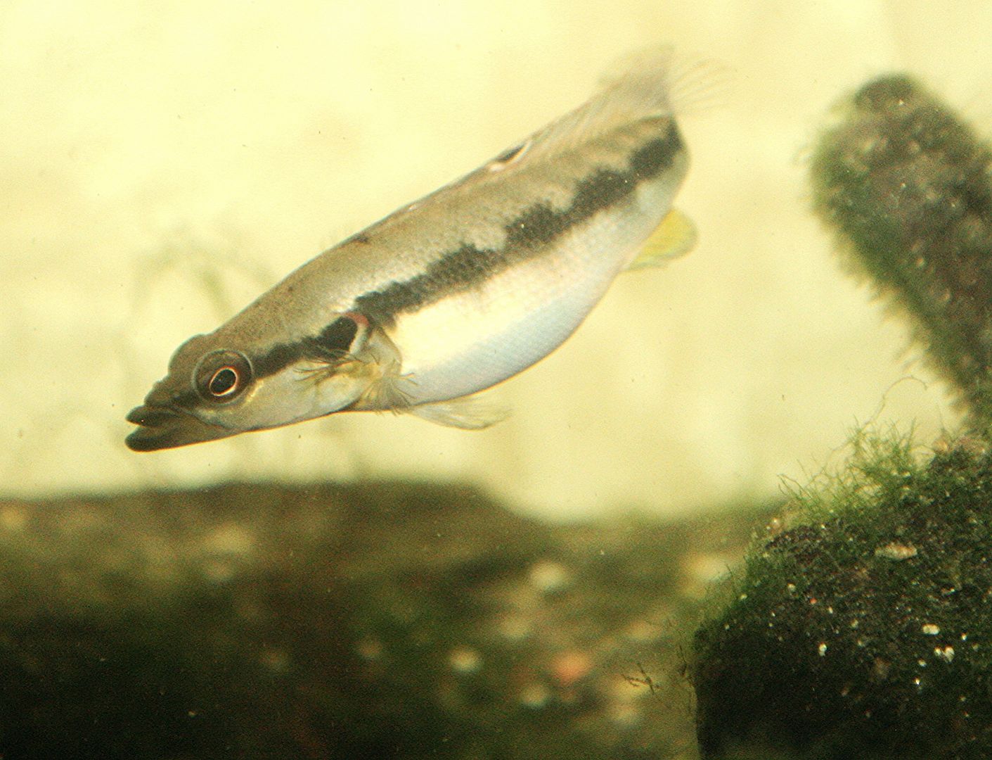 She shares a 150 gal S American cichlid community of 8 Guianacara sp, 3 Acarichthys heckelli and half dozen xCichlasoma ornatum, at this point all is peaceful, all these cichlids are about the same size, or much bulkier.