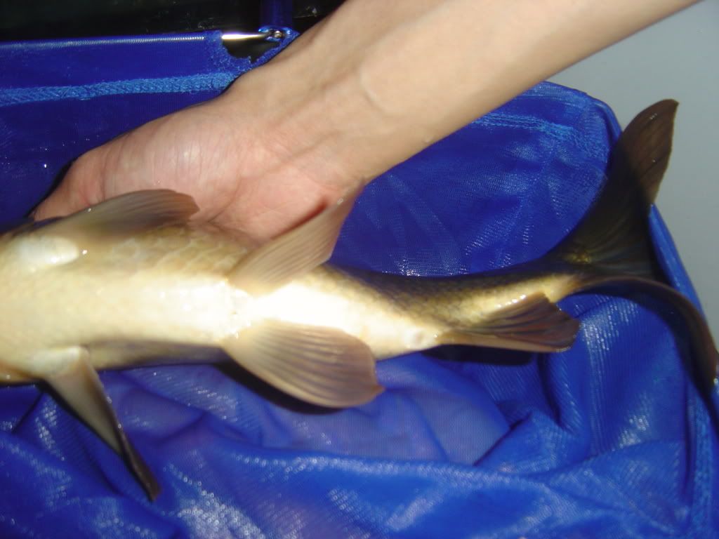 Left Side Shot - notice the darkened scales surrounding his body. The redness in his mouth is due to being caught.