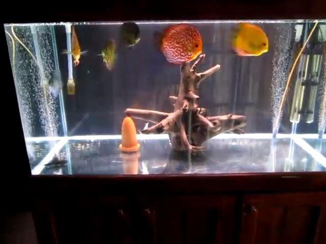 Dad is the Stendker pigeon blood red and the mum is the albino/yellow. This is there 6th time trying, they only ever got to keeping the eggs for a few days before eating them, they should be free swimming by tomorrow. At which point ill put another video up assuming they dont eat them