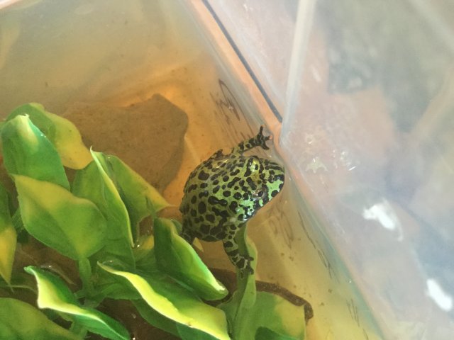 For reference, here's my enclosure, and my toads. I've found this type of enclosure to be by far the easiest to clean, safest, and most dynamic way to keep semi-aquatic amphibians.