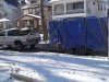 now that everything is here we needed to keep the tank warm so the acrylic window would not shrink and possibly pop the seems, i talked to john at waterdog products (the people that made the tank) and he said that a 14' piuece of acrylic can and will shrink up to 1/4 " if it got cold so that is why i took the generator and heater, now what i did at home was to hook up the heater to a dedicated plug that i had in my garage for my air compressor, meaning that there is nothing else on a 15 amp breaker except for that 1 plug, so it has enough electricity running to it, and nothing else being turned on in the house will trip that breaker, and then i ran the camera wire into my house and set up a 10" screen to it so i can view the thermometer anytime that i sit at my computer, i just looked over and it is 65 degrees inside the tank and it is 21 degrees outside the tank, so were good for the moment untill i can start the build of the extension on my fishwroom, which will be this summer, so the tank is here, and waiting till summer to build its new home.
