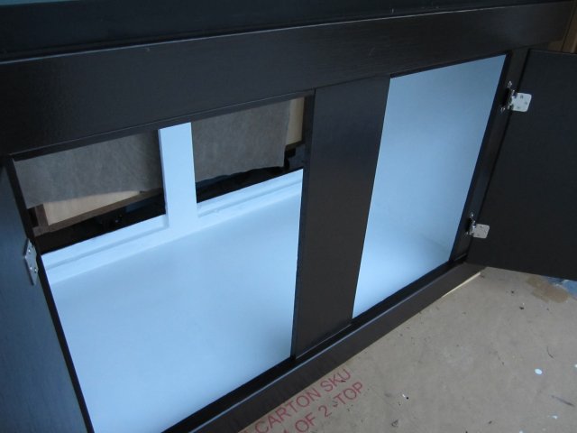 - Exterior of the stand refinished; custom stained espresso color and two coats of polyurethane satin finish