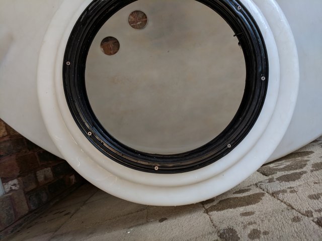 2 x 5" holes drilled in bottom for 4" bottom drains