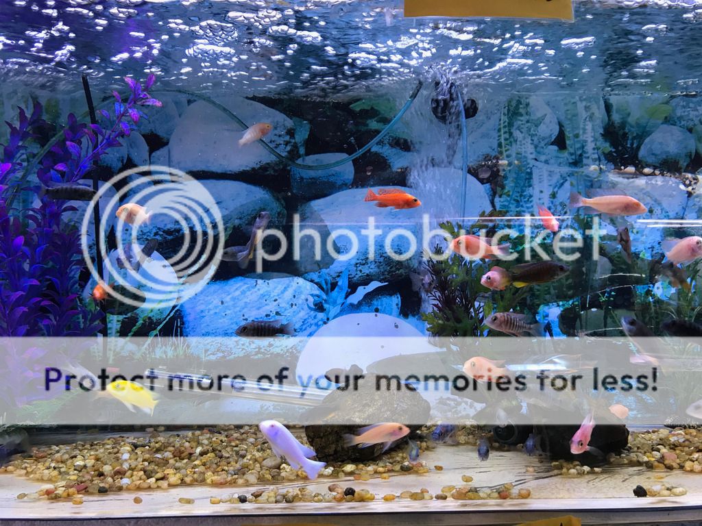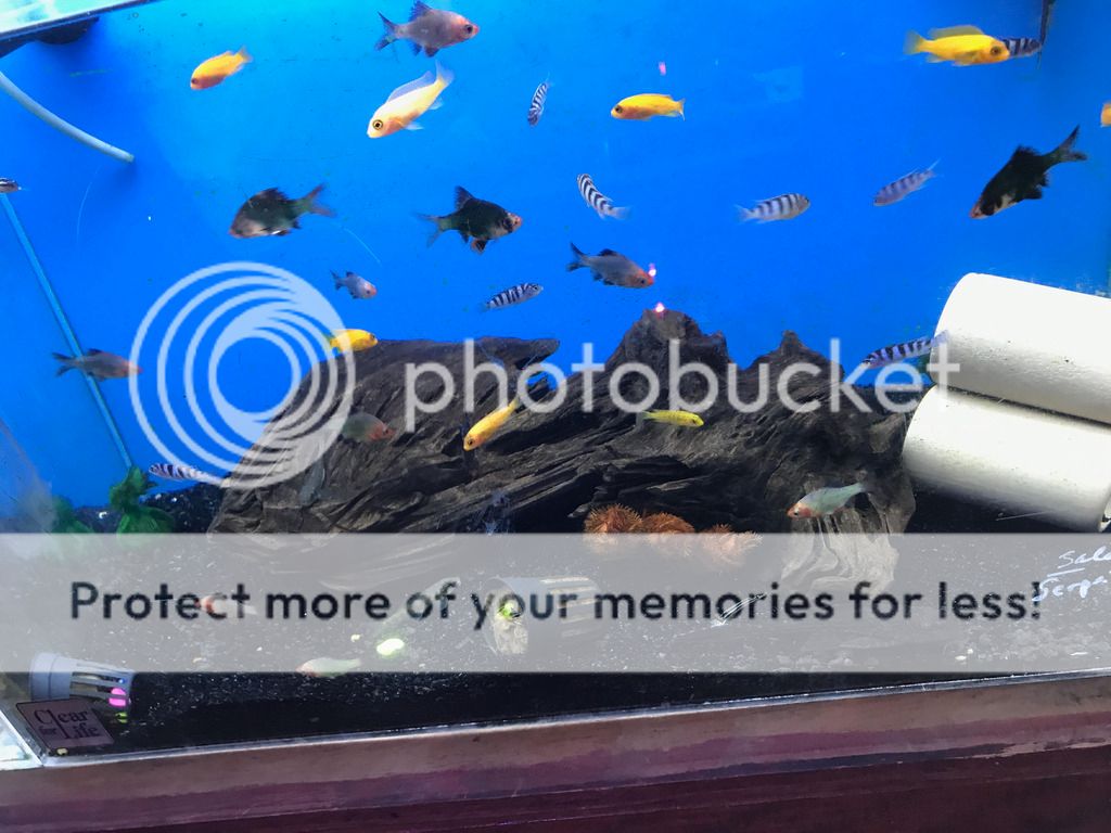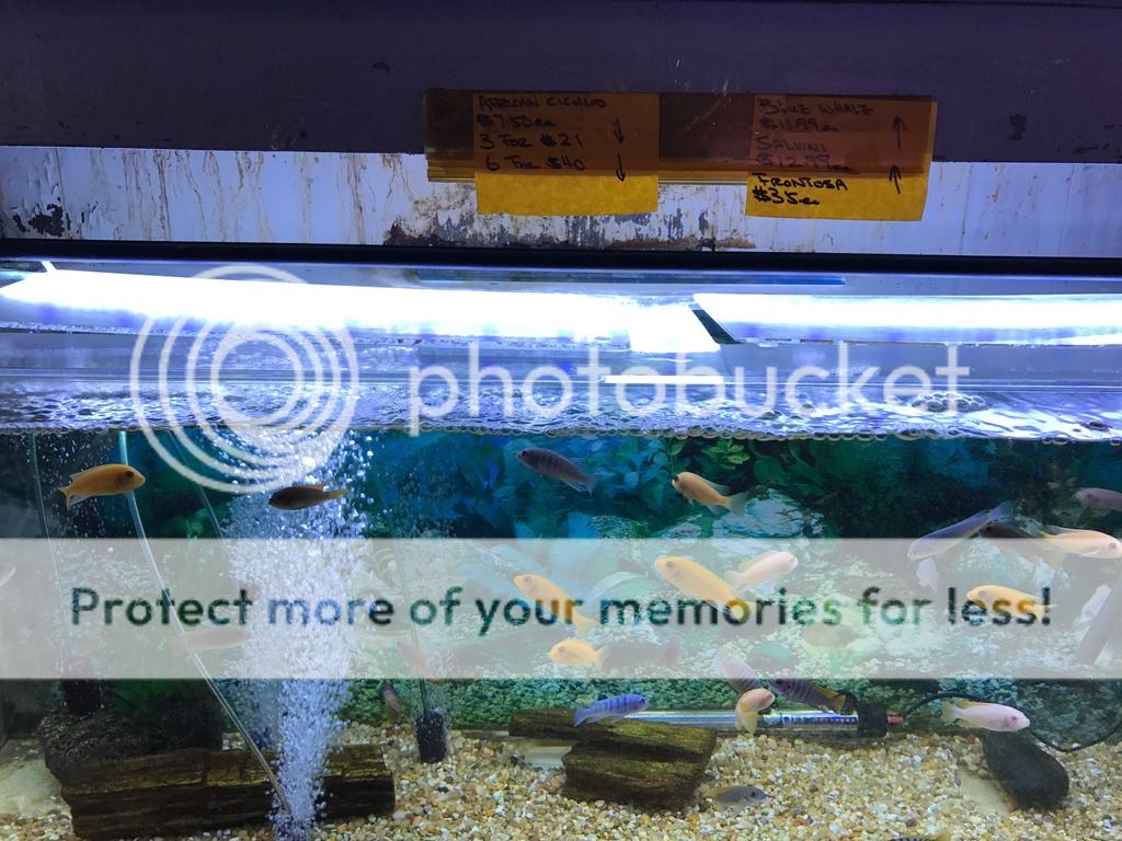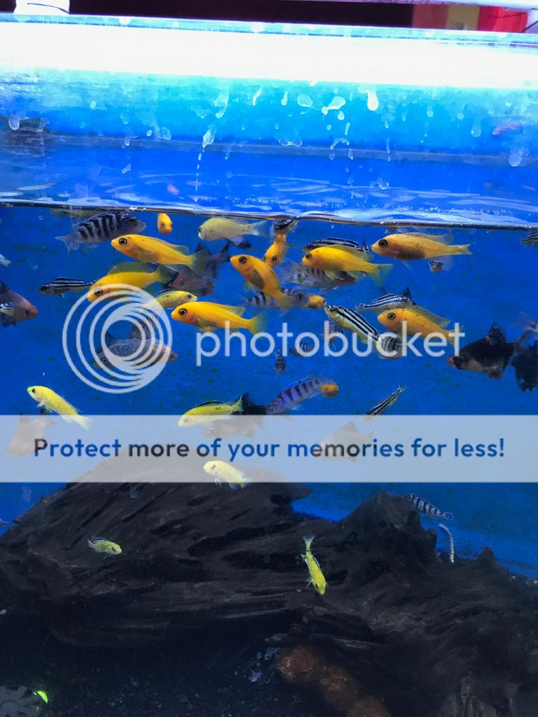 P saulosi, melanochromis auratus, yellow lab, green tiger barb.