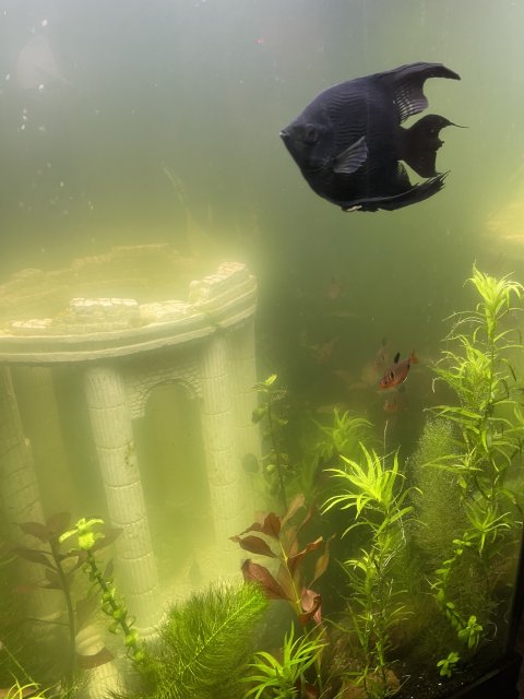 My long nose angel has grown quite a bit, and it is now full grown and looking super sharp. Still a single fish but it seems quite happy and colors up beautifully.
