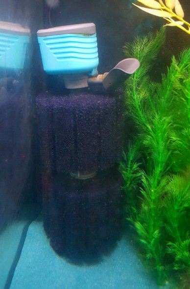 I went ahead and installed the jumbo sponge filters this weekend. Forgot about the buoyancy until they lose all the air! There's a weighted base but likely it would only hold one sponge down, and I had doubled them. Had a helluva time getting them to stay down. So when I first put the powerheads on they kept "hissing" because the cells were full of air. I squeezed them to get air out. I get one to stay down, then the other one floats up (across the tank).