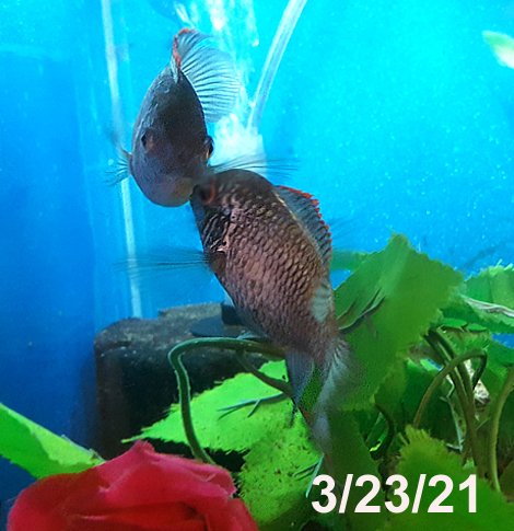 After I got the fish stuff went sideways in about a week. I scrambled to get temporary housing, separating the parrots. So over time I've had various combinations that got me mixed results. The only fish that totally drove me crazy was my severum Chip. NOTHING worked with that fish, and I wasn't prepared to have another solo at the time.