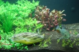 @Geronimo69 (no idea how to quote, sorry): Will do, thanks alot (: was just wondering and thinking really hard cuz with a peaceful fahaka the possibilities would have been endless. However i do understand that the fahaka has been acknowledged as the most aggressive of all puffers, not without a good reason. Yet, the previous owner did successfully keep the fahaka with a pb. Could there be something with pb that kept it safe lol, cuz i noticed that it went pretty close to it in the pics but didn't show any aggression.