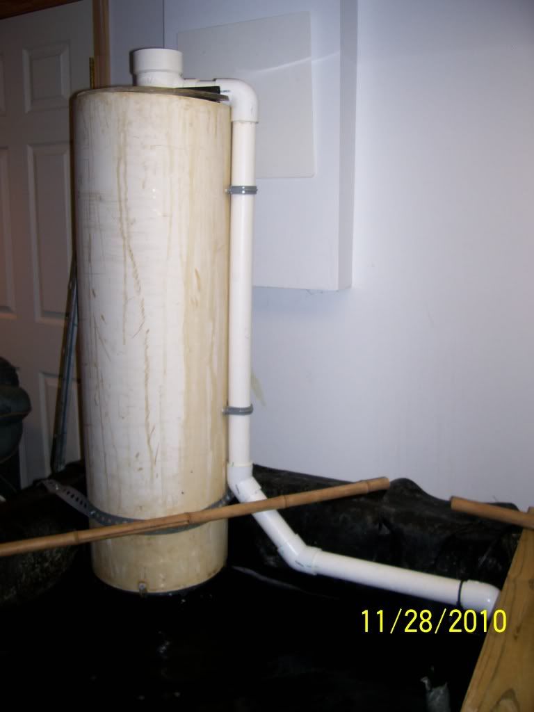 Filter (3' long piece of 12" pvc full of bio balls, also has a layer of crushed coral at the top and fabric filter)