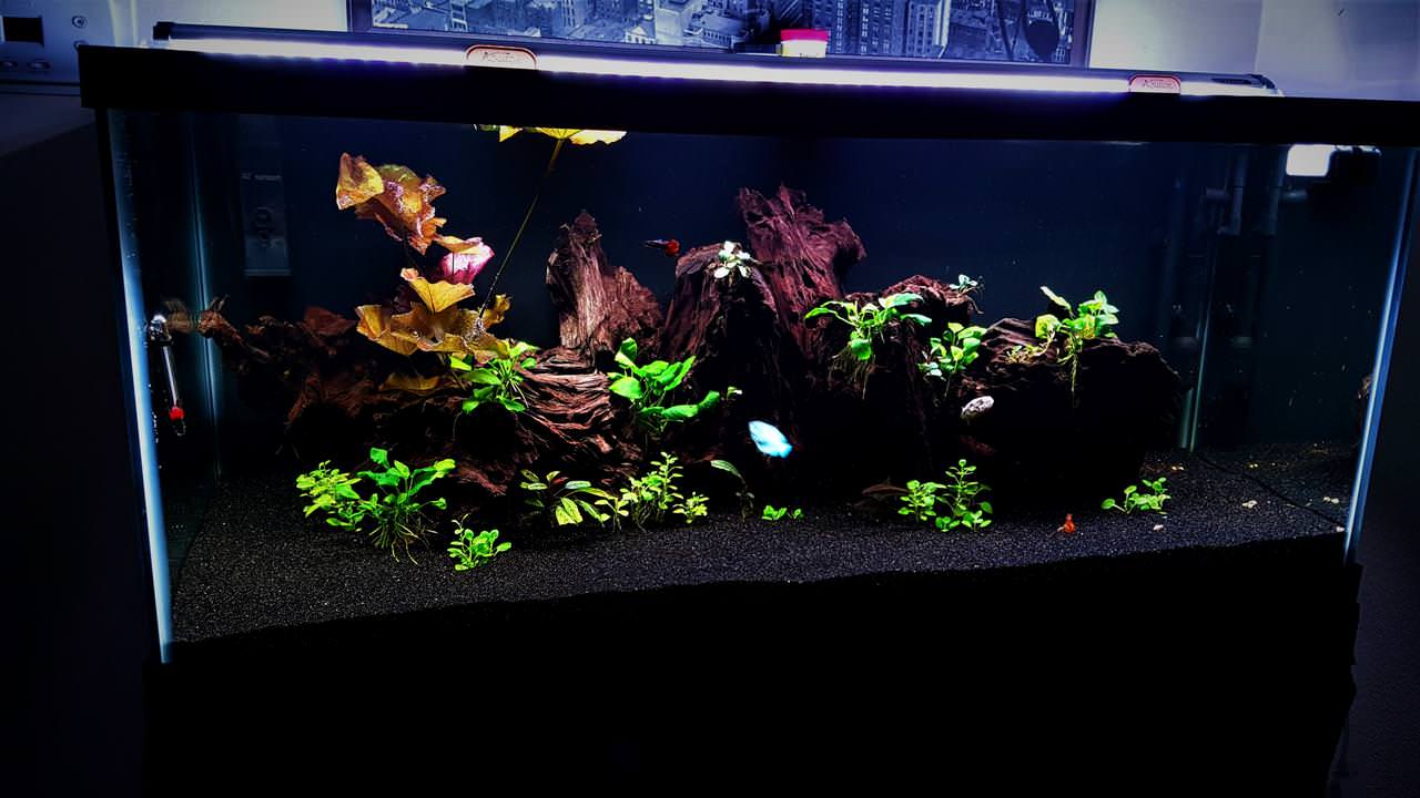 One of my biggest worries about putting him in the 75 was that I thought I would never see him. I am happy to report that is simply not the case. He is always front and center and swims right up to the glass to greet me. Its super fun to watch him bolt across the tank to come up to me. When I feed him I show him the blood worm cube and when I drop it in he attacks it! Its so funny. He is just a joy to have! Zero regrets across the board.