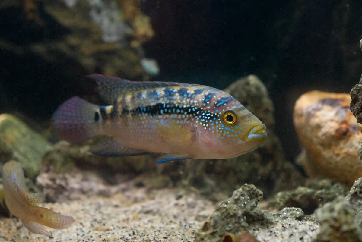 Hi all, this is my first post, I finally have a monster fish! lol I have a planted Apistogramma tank and a Tanganyika community but have always wanted a big mean fish. I finally got my Jack today and im loving him so far. His only tank mate is a Jewel and they seem to be getting along well for now, jewel can always be re-homed if they don't get along this tank is all for him.