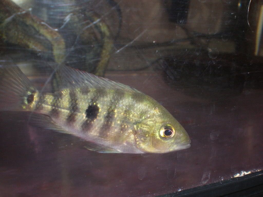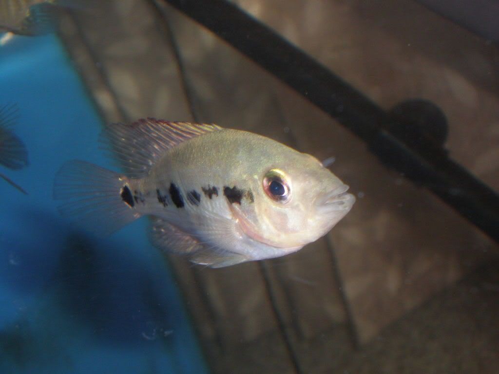 Well, it's only been a couple weeks since I last gave an update, but they finally seem to have begun some changes. The first two pics are of one that is becoming one of my favorites. He's really starting to show and retain those vertical bands. The 4th is my other fav. He's got that spot on his upper side that almost seems like a peel. I want to blame it on them picking on each other, but it's been there for quite a few days now. In that time he's had a couple fin nips show and heal already, so I don't know. The last pic you can see some red starting to come in the gill area (there are a couple getting this now), along with in the dorsal getting more prominant. Oh, and they're mostly about 3" now. A couple a little smaller.