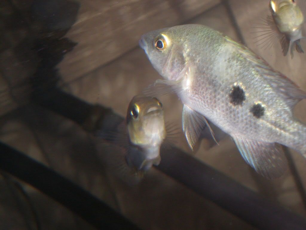 Well, all snooks (red, and the "common" green) start out silvery green. They look like that until a few inches, when the reds begin to turn red. So what their colors do in the future is still to be seen, because they still haven't gone through their changes yet. My thoughts are beginning to move toward snook body and body color, but with spotting, spangling, and patterns of the "mutt" (bp, haha). One of them, also one of the largest, is showing more of a blue, looking very different from the others. They are averaging about 2", but a couple are nearer to 2.5". They seemed to be growing slow, until recently, when they've started spurting some. I'm hoping within the next month or so I will see some real changes....hopefully.