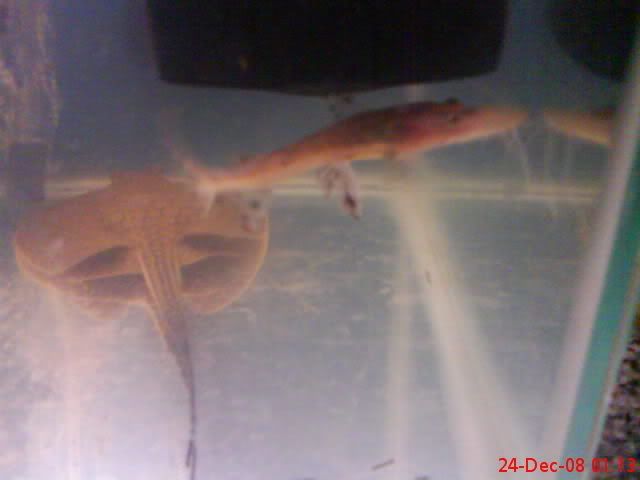 ive got a baby rtc that is around 1.5"-2" long and a tsn that is around 2.5"-3"long great fish the tsn has gone yellow/gold coulor but other than that hes fine the rtc is just like any other rtc gready has just ate a chunk of prawn and some ray poop for some reason i think its because the ray is feeding on blood worm and the rtc has eatten some sinking carnivor pellets so they are really good for them better than any live/dead food for them as it says that on the bag but heres some pics ive got them about 10 hour ago heres the tsn
