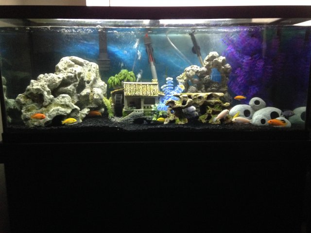 Here's a pic of my tank and two of the Afra Cobues are in the pic as well.Sorry to hear that - how big is your tank and what visual blocks do you have ? I have a red top and it does the same with my red jewels but it’s greatly out numbered and oversized but they have clearly defined their territories now and they stay away from the others rock so to speak. Also helps to get in there with a net sometimes and or isolate one for a day if necessary which is what I did with my red zebras. Also how many females do you have in there ?