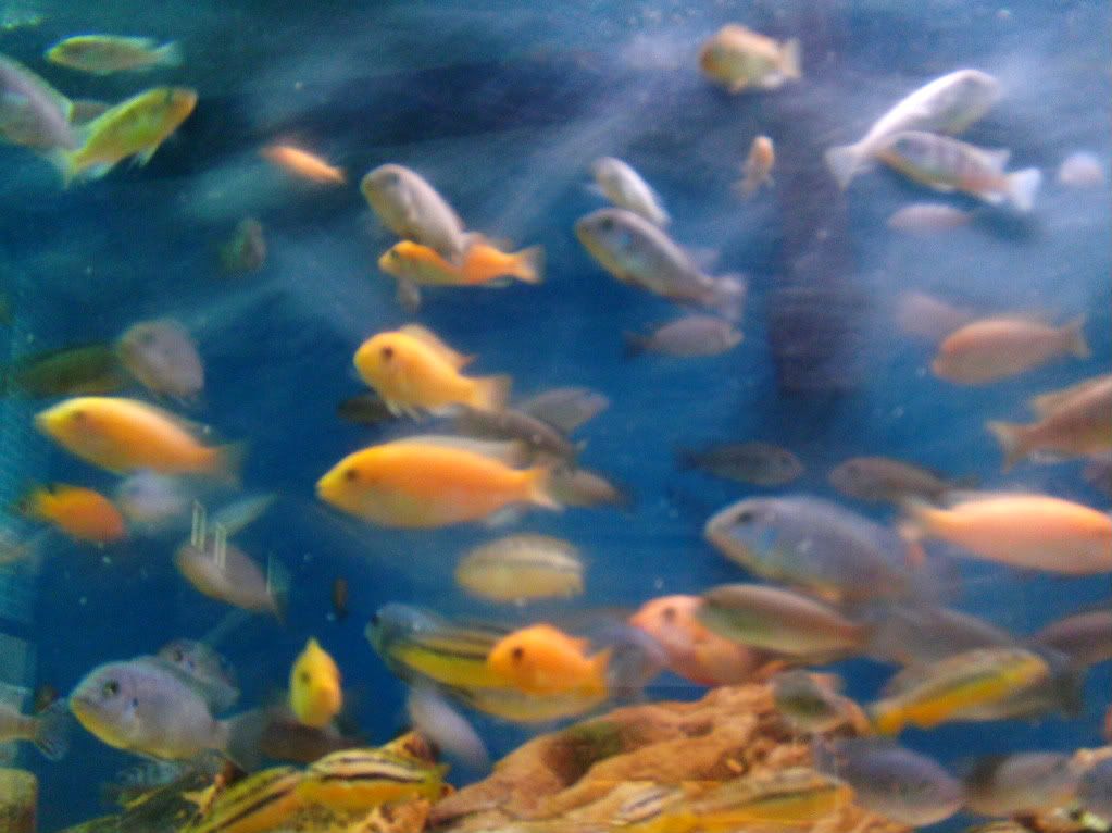 I am new to having tanks, I picked up a setup and was looking to get some African Cichlids. I was wondering if I would have a problem picking up some yellow and blue (maybe even an orange) Cichlids. Is there anything I should know about mixing different colors? and should I put some other fish that swim fast around the top of the tank to keep them from attacking each other (if so any recommendations would be great).