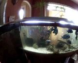 I have showed him P.talapia (Lg spot), green terror, Texas cichlid, Frontosa (he loves the look but wants something not as docile), Midas and bright red Flowerhorn. So far her likes P.talapia, FH, and Midas best but wishes FH and Midas were blue LMBO.
