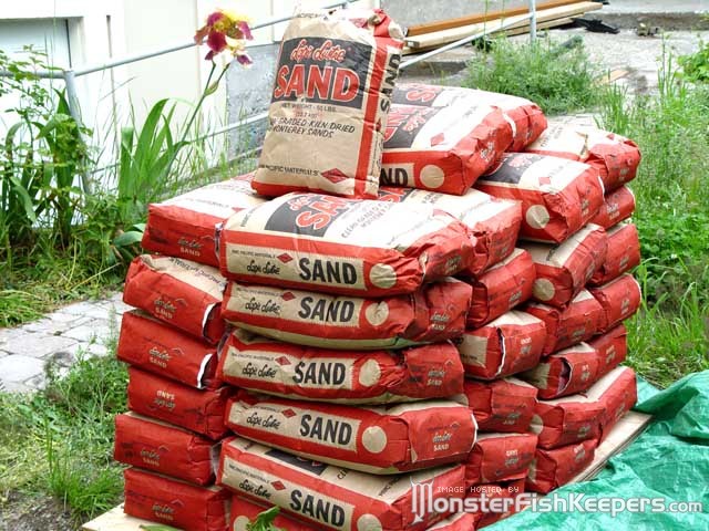 The Silicone sealing the aquarium windows is quite thick in places and although the label indicates that it can cure in 24-48 hours we know better. During the week allotted for the Silicone to cure I delivered one ton forty 50-lb. sacks of Monterey sand to Todd.