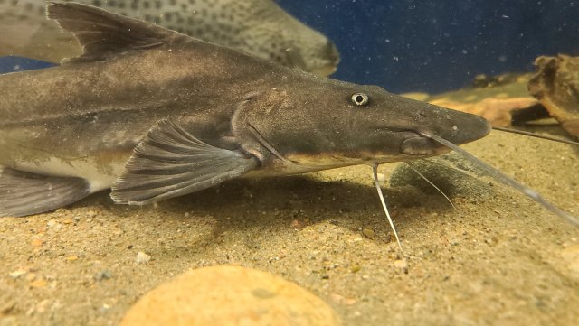 The tale of our two Peru piraiba continues. The skittish one had spent 1 year in a 240 gal in timeout. We are trying it again back in the 4500 gal and arriving close to where we left off - a very different set of tank mates but the tank mates bother it (first it was the assertive piraiba, then it was the TSNxRTC hybrid, now IDK who yet, maybe same two maybe not); the fish is skittish and perhaps this even tempts some tank mates to bite it every now and then, especially at nights; it feeds some but not to our satisfaction because of the skittishness.