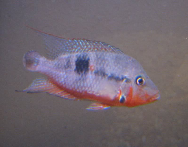This is my Firemouth that I was rescued about 2wk ago he was in a tank with 2 dovii and flowerhorn he had almost no tail and dead. Progress looks good after 2wks