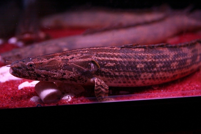 well it came in today the Polypterus .sp Hybrid Guinea and it is 13 inches long female and just little thin. she is active and she has eaten silversides and she is still swimming around and Toyin did a great job packing this fish .has a vary strange pattern and has a head like a Endlicheri and the body of a Lapradii and when her color comes in more. I can be more sure on the diffrent patterens of the other fish she is in a tank with a Kolibe and guinea Lapradi and 2 Endlicheri . vary cool I love this fish Thanks again Toyin #1 guy the best, 16 fish and counting going on 6 yrs with him.