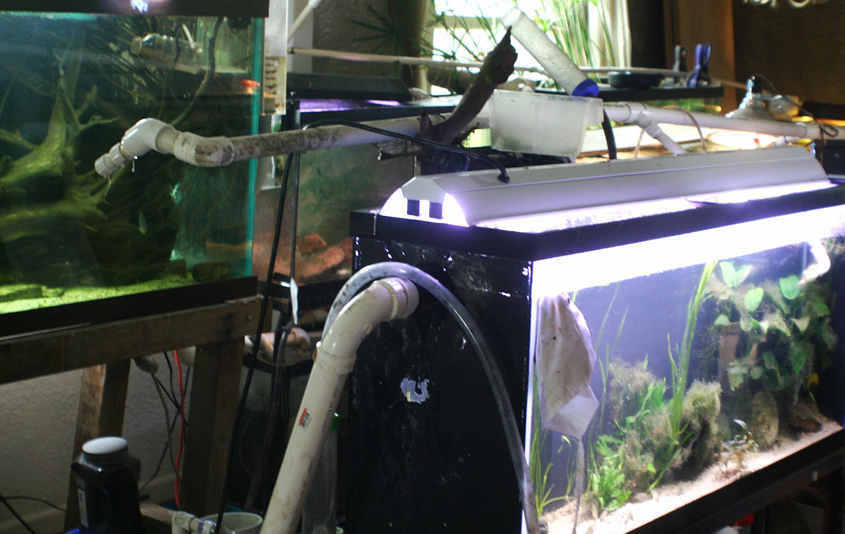 used bulb type below, in hardware store shop light fixtures above the tanks